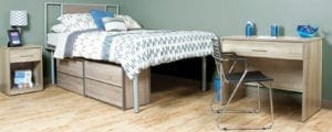 Using state-of-the-art engineering methods, our craftspeople build student residence furniture with features that ensure durability and quality. We use techniques such as full-extension glides and finger pulls on our drawers, Mortise and Tenon joint frames, corner blocks, solid wood bedposts, and English dovetail joints.