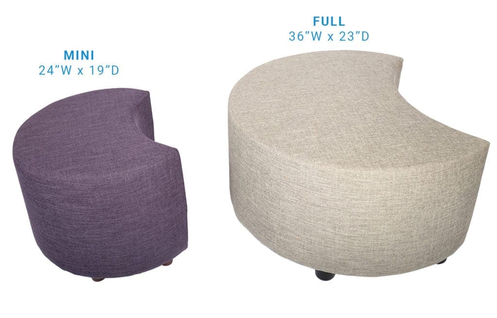 The Lunar Series is a cozy, half-moon shaped ottoman that fits perfectly in a living room, lounge, or common area. In our Upholstery section you will find the Lunar Series featured. Use it as a standalone piece or you can connect several together to make it into more seating. It’s versatile and makes a common area not so common with its special shape and attraction. The fabric is attached with Velcro® Technology and can be removed with a few easy steps. Be creative but most of all, put your feet up on a Lunar and get refreshed.