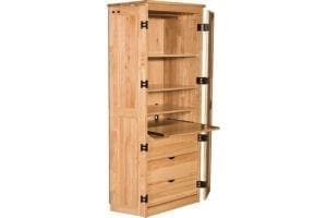 You can get a wardrobe that has a pull-out desk which is ideal when you want to save space. Store the items typically use while at your desk in the drawer directly below it. Be careful to only use that drawer for desk items or use a divider to keep other pieces in their own space. Otherwise, you will have a new “junk drawer.”