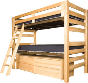 Making the climb to the top bunk is secure with The Makers of Cool super secure bed ends. The solid wood posts are 3” x 3” and are used like a ladder. They are a safe and reliable way to climb up and